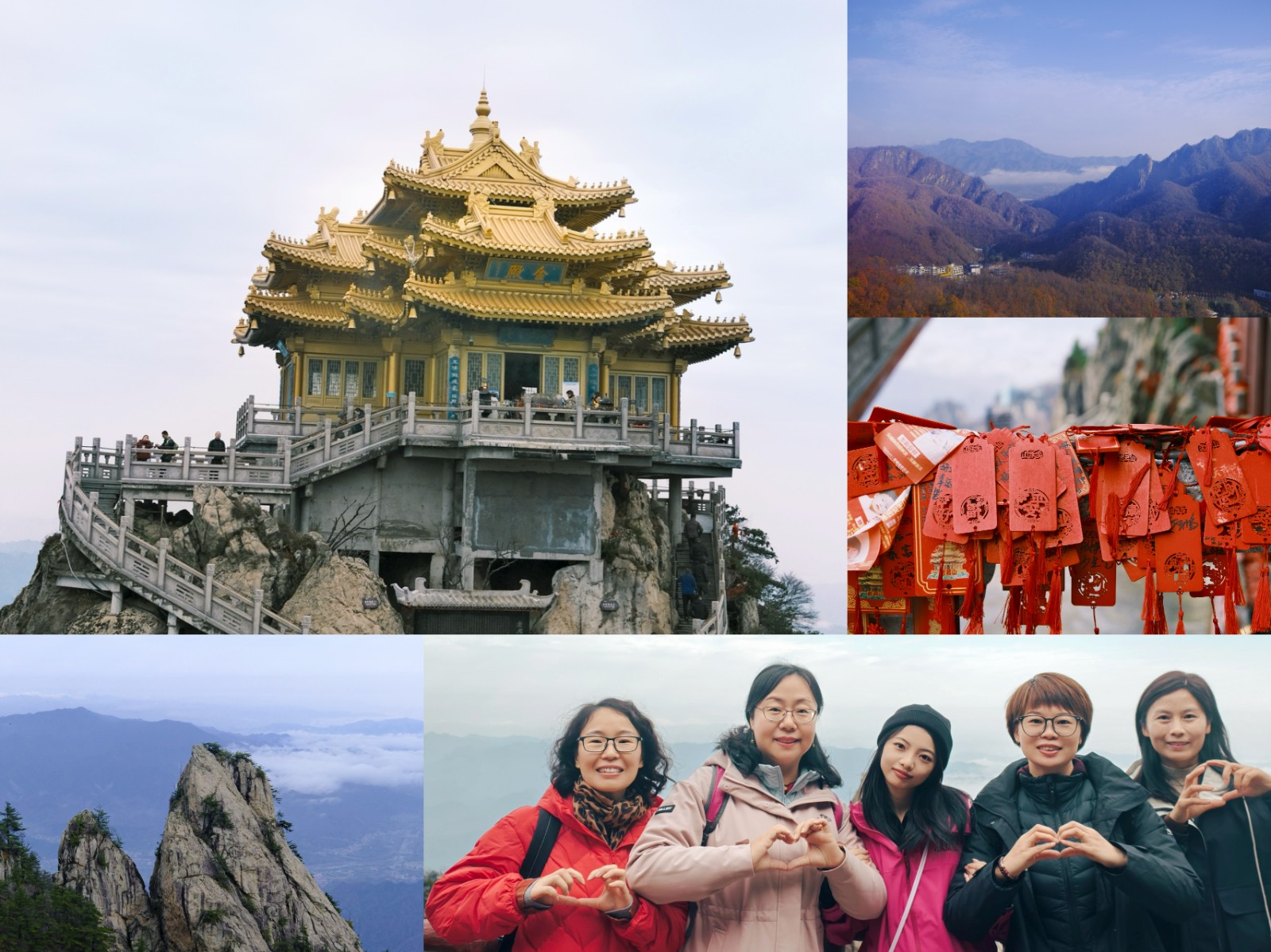 乘缆车、踏山路。抬眼间,烟纹云缕、奇岩怪石与润碧松柏尽收眼底。大家肆意呼吸山中清气,工作的忙碌顿时化作眼底的开阔,团队凝聚力在共同攀登的喜悦中悄然升温。山间夹缝处晨光渐散,立于半山腰,道家仙骨遗韵随风声拂耳,恍惚间大家似化身为山中修行者,与山石草木相融。