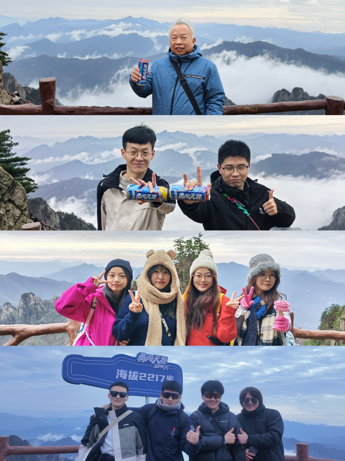 8日清晨,浸润着水汽的晨光漫过洛阳的灰瓦层檐,为古城镀上一抹淡金。同事们整装出发,乘大巴前往老君山。抵达山脚时晨雾未散,青灰色山峦在缭绕的云烟中若隐若现,隔夜的寒气中仍裹挟着细雨的余韵。众人展开公司旗帜合影——那一抹鲜亮的色彩,在青白山水间格外夺目,仿佛大家集体心绪的明亮注脚。